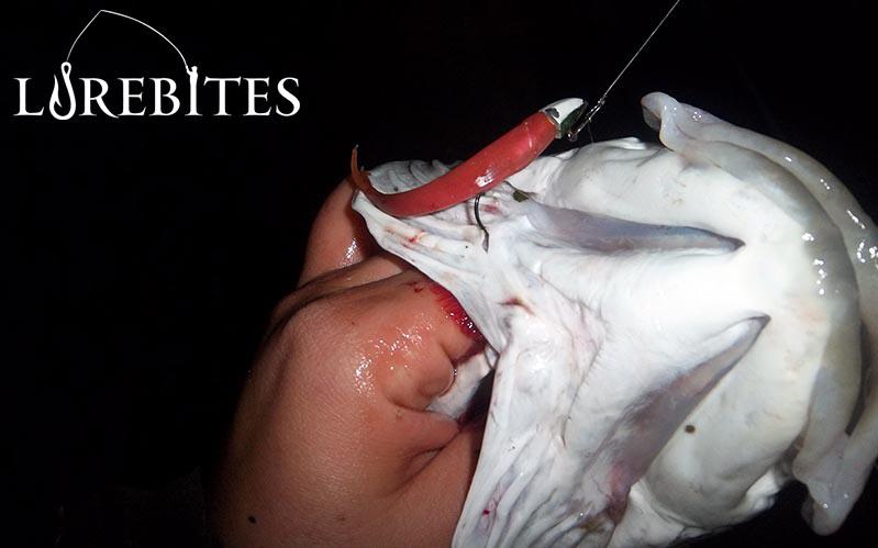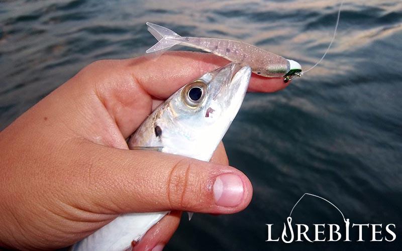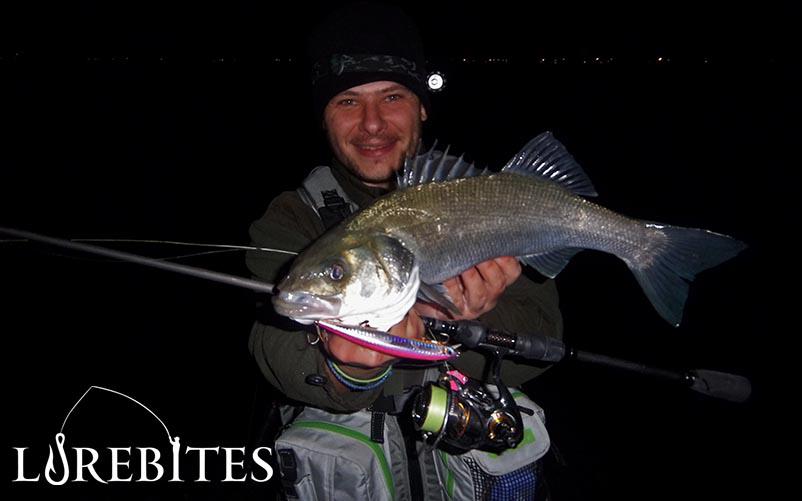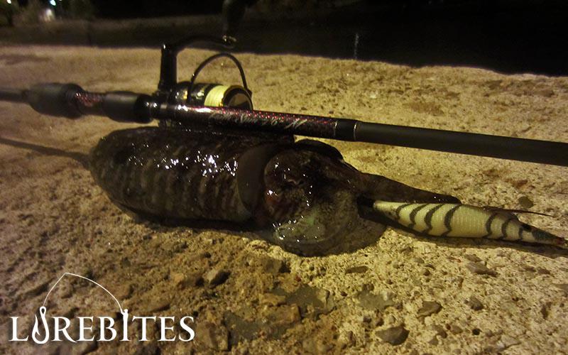 Από πίσω του ήταν αλλά δυο. Κατάλαβα λοιπόν ότι υπάρχουν κοκκάλια. Έτσι θέλησα να δοκιμάσω το καλάμι και με σιλικόνες μικρές. Πέρασα στην παραμάνα την Delalande drop shad 7,5 εκατοστά με ένα jighead 7 γραμμαρίων. Στις πρώτες βολές έπαιρνα μικρά χτυπήματα μα δεν τα καταλάβαινα καθώς ψάρευα πρώτη φορά το καλάμι. Μετά από τρεις βολές λέω να κοιτάξω την μύτη του καλαμιού. Σε κάποια φάση εκεί που βυθιζόταν η σιλικονίτσα μου παρατήρησα την μύτη του καλαμιού να πηγαίνει πάνω κάτω. Αμέσως κάρφωσα και το κοκκάλι ήταν πάνω.