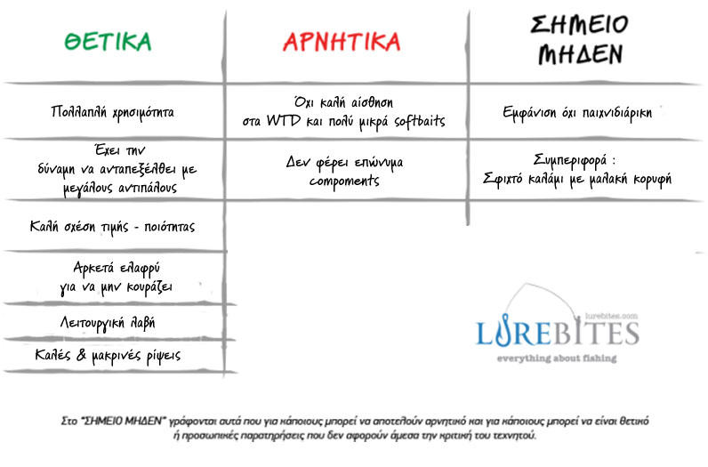 Εδώ και τέσσερις μήνες που το έχω στην κατοχή μου, το έχω βάλει σε μεγάλες δοκιμασίες και δεν με έχει προδώσει ποτέ. Βγάζει πολύ περισσότερη δύναμη από όσο δείχνει όταν το πιάνεις για πρώτη φορά στα χέρια σου. Εκτός από λαβράκια το δοκίμασα και σε λούτσους με μεγαλύτερα βάρη και σιλικόνες από το αναγραφόμενο casting weight, χωρίς να έχει κάποιο πρόβλημα. Σε γενικές γραμμές είναι πλέον το βασικό μου καλάμι σχεδόν για όλα τα ψαρέματα που κάνω εντός της τεχνικής του spinning και τα παρακλάδια της π.χ. Eging.
