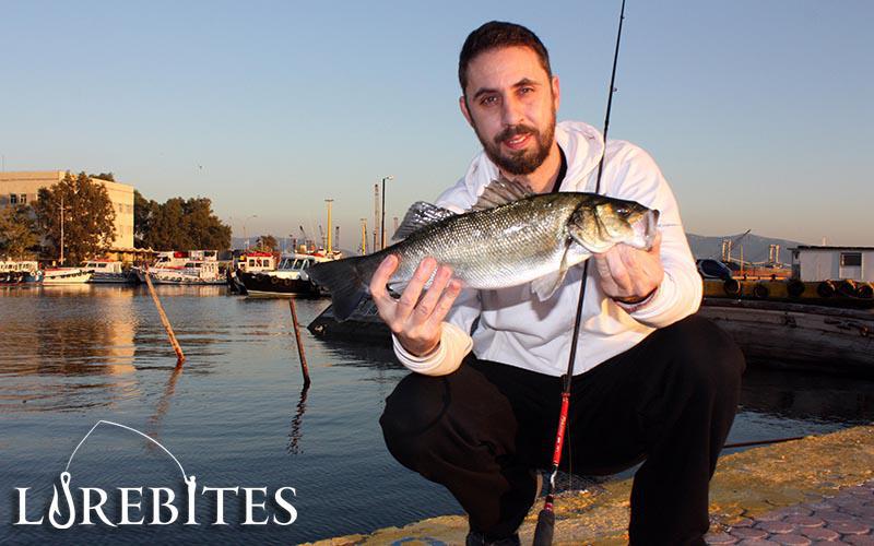 Κάρφωσα ακαριαία αφού είχα οπτική επαφή με το τσίμπημα του ψαριού και άρχισε η μάχη. Προς μεγάλη μου έκπληξη, το ψάρι εκτός από ελάχιστα φρένα δεν μπορούσε να ξεφύγει από την περιορισμένη ασφαλή ψαρεύτρα μου των δυο τετραγωνικών και γρήγορα παραδόθηκε. Το καλαμάκι είχε κάνει πανέμορφη δουλειά και αυτό φάνηκε στα επόμενα πέντε λεπτά που προσπαθούσα να βρω τρόπο για να το βγάλω στον ντόκο καθώς δεν είχα απόχη μαζί μου. Τελικά, κατέβηκα σαν ακροβάτης σε μια πέτρα που εξείχε χαμηλά από το τσιμέντο και έδωσα το καλάμι σε ένα παππού. Έπιασα το ψάρι από το στόμα και το προσγείωσα στο τσιμέντο. Ήταν ένα χοντρό λαβράκι 1126 γραμμαρίων! Όχι, άσχημα για αρχή!