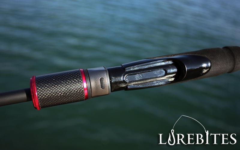 Αφού μιλάμε για κορυφή, πρέπει να σημειώσουμε ότι αυτή είναι μασίφ και όχι tubular που σημαίνει ότι θέλει προσοχή. Το υλικό του καλαμιού είναι high modulus carbon ενώ η βιδωτή βάση μηχανισμού, πέρα από τις όμορφες πινελιές στις λεπτομέρειες της, ασφαλίσει γερά τον μηχανισμό.