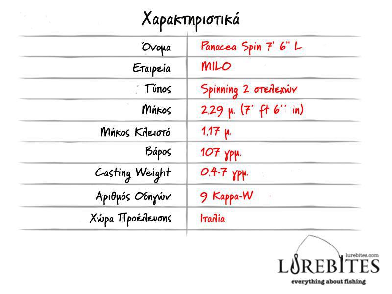 Μπορεί να καλύψει όλες τις ανάγκες σε πολύ καλό ποσοστό και αν θέλαμε να πούμε ένα αρνητικό του, το μόνο που μπορώ να σκεφτώ είναι όσους θέλουν την απόλυτη αίσθηση σε δολώματα από 0,5 του γραμμαρίου μέχρι τρία γραμμάρια. Βέβαια για αυτούς τους λίγους εξειδικευμένους υπάρχουν ακριβά καλάμια με c.w. 0,5-5 γρμ. οπότε μπορούν να απευθυνθούν σε αυτά. Το Panacea Spin λοιπόν, είναι “πανάκεια” για όσους θέλουν να κάνουν LRF με μεγάλο εύρος δολωμάτων και άμα τύχει να κάτσει κάποιο ψάρι πάνω από κιλό να μην έχουν πρόβλημα.