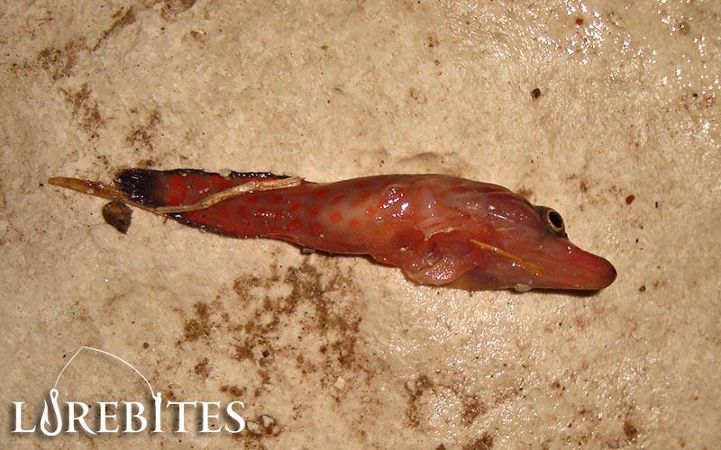 Σε ένα ψάρεμα εγγλέζικου στον Κορινθιακό πριν πολλά πολλά χρόνια, έβγαλα το ψάρι που βλέπετε πιο κάτω το οποίο είχε μέγεθος πέντε εκατοστά αλλά πολύ παράξενη όψη. Στόμα πάπιας, τεράστια ψεύτικα μάτια στο κεφάλι, έντονες βούλες στο σώμα, στην κοιλιά πτερύγια βεντούζα σαν του κοκοβιού και σώμα που κατέληγε σε ουρά γύλου.