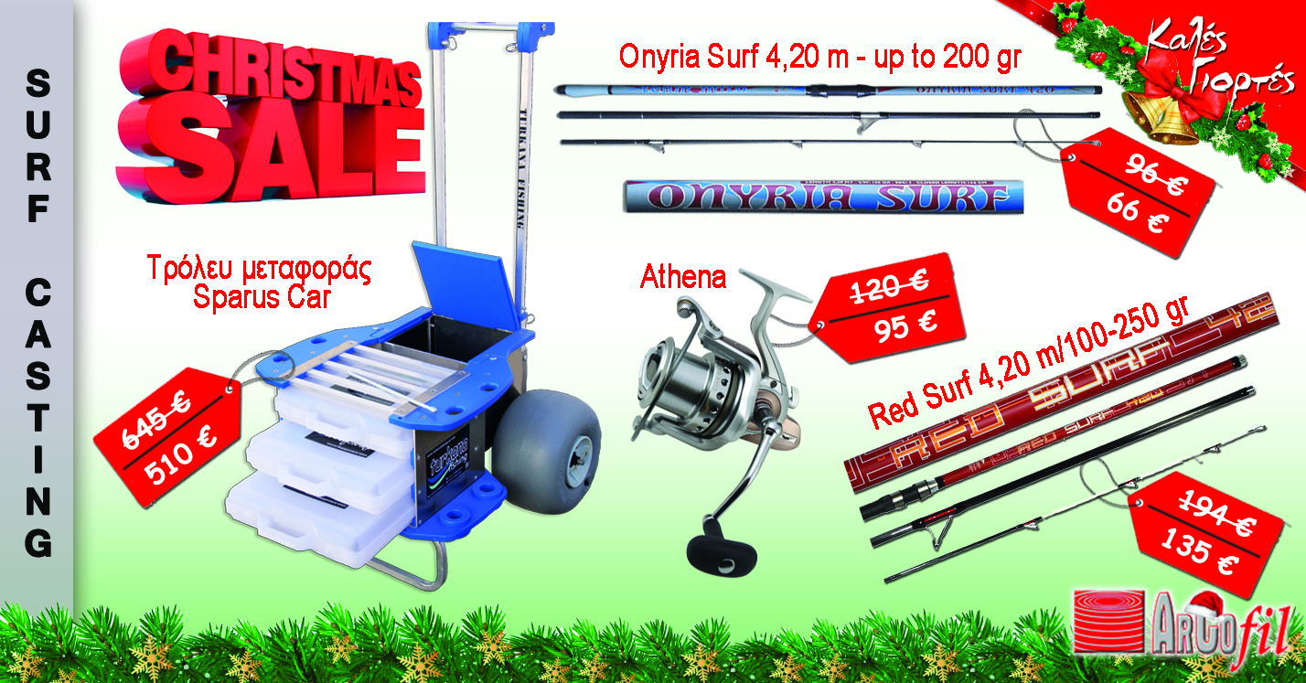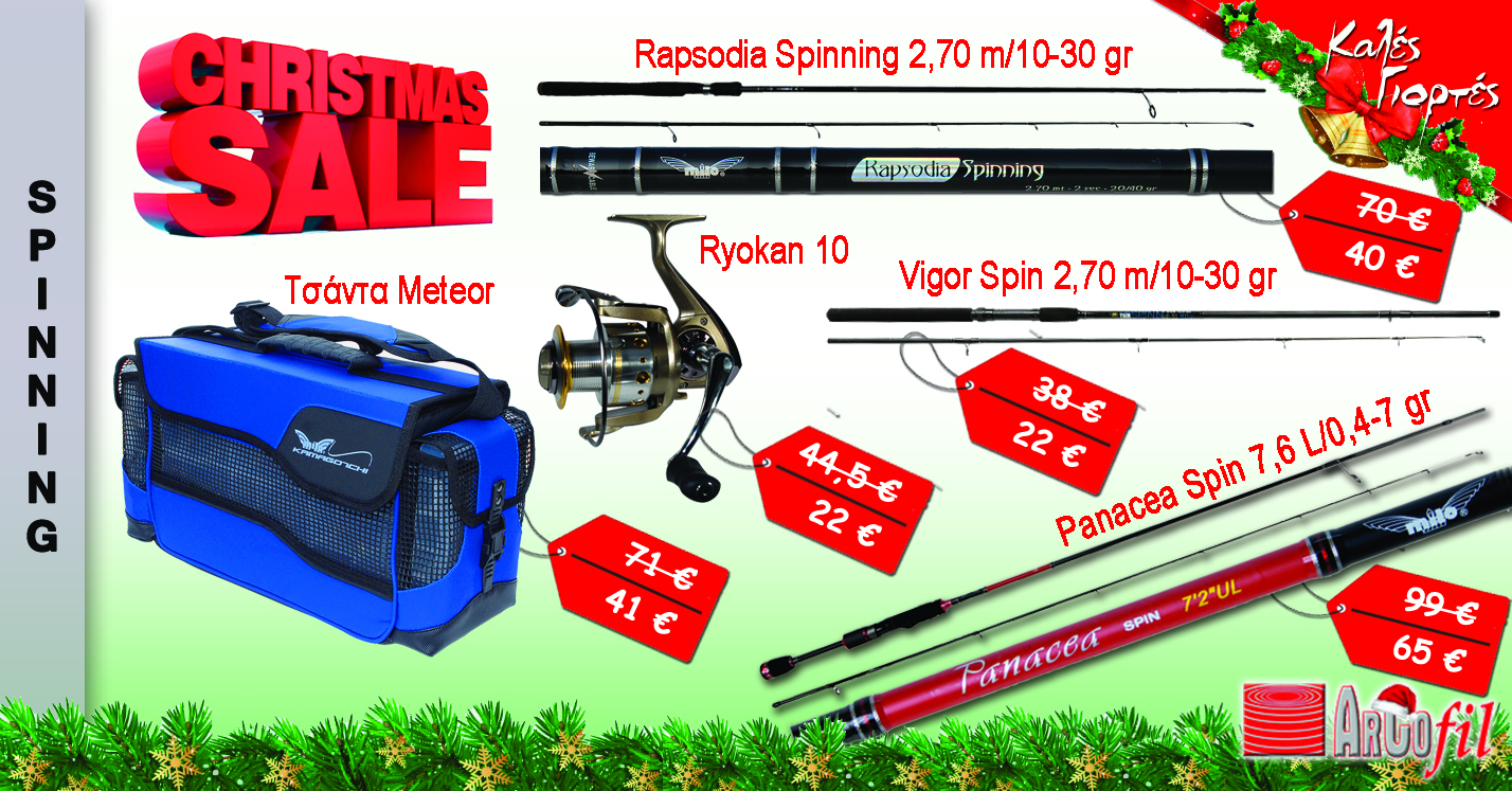 Η εταιρεία μας στο πνεύμα των Χριστουγέννων αποφάσισε να σας προσφέρει μια σειρά προσφορών σε τιμές πολύ χαμηλές ώστε να αποκτήσετε πολύ πιο εύκολα και γρήγορα τον ψαρευτικό εξοπλισμό σας! Η προσφορά αυτή θα ισχύσει για όλη την περίοδο των γιορτών και για αγορές από το eshop μας αλλά και από το φυσικό κατάστημα μας που βρίσκεται Λεωφ. Αμαρουσίου 15, στην Λυκόβρυση. Χωρίσαμε τα προϊόντα της προσφοράς ανάλογα την τεχνική ψαρέματος που ανήκουν ώστε ο καθένας να έχει συγκεντρωμένα αυτά που τον ενδιαφέρουν. Η προσφορά απευθύνεται σε περιορισμένο αριθμό τεμαχίων και θα τηρηθεί σειρά προτεραιότητας.