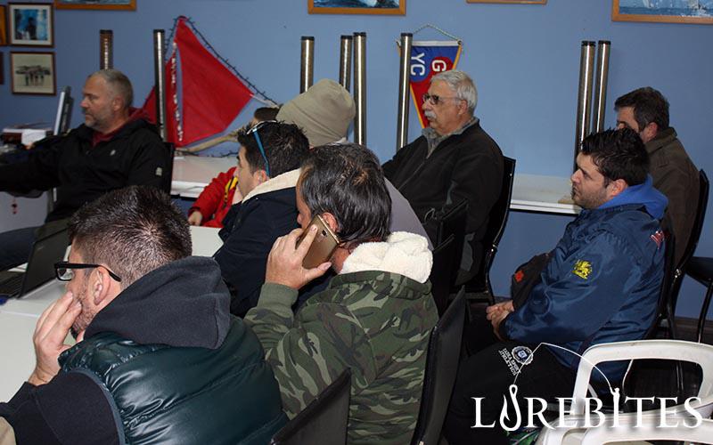 Πανέμορφο μέρος με ανθρώπους που δεν σταματούν να σκέφτονται ατάκες ώστε να διακωμωδήσουν οποιαδήποτε κατάσταση. Ναι, υπάρχει και μέρος στην Ελλάδα που ο κόσμος μπορεί και γελάει ακόμα. Στην μικρή αίθουσα του Ν.Α.Ο.Κ. μας καλωσόρισε ο καταπληκτικός έφορος αλιείας του Συλλόγου Χρήστος Δούκας και σιγά σιγά άρχισαν να μαζεύονται καλοί φίλοι και ψαράδες της πόλης μέχρι που γεμίσαμε την αίθουσα.