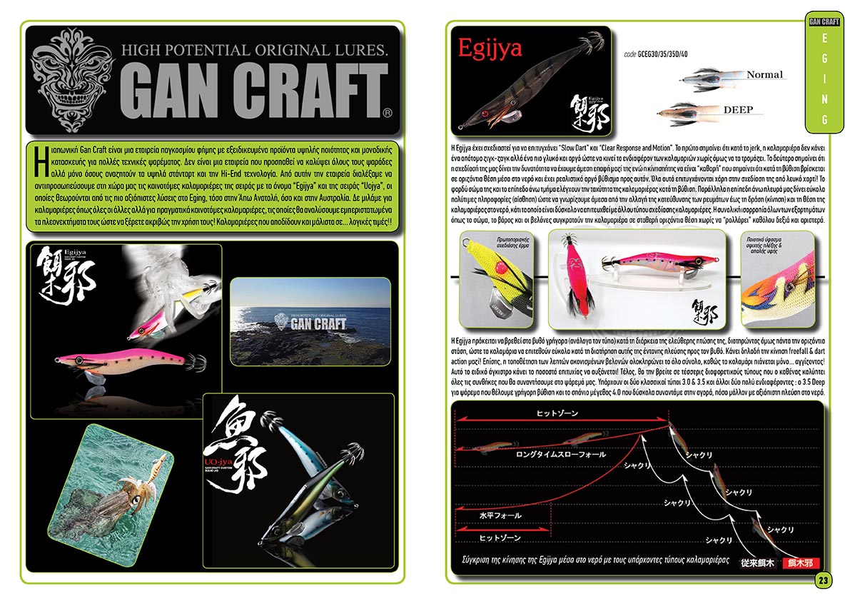 Η ιαπωνική Gan Craft είναι μια εταιρεία παγκοσμίου φήμης με εξειδικευμένα προϊόντα υψηλής ποιότητας και μοναδικής κατασκευής για πολλές τεχνικές ψαρέματος. Δεν είναι μια εταιρεία που προσπαθεί να καλύψει όλους τους ψαράδες αλλά μόνο όσους αναζητούν τα υψηλά στάνταρτ και την Hi-End τεχνολογία.