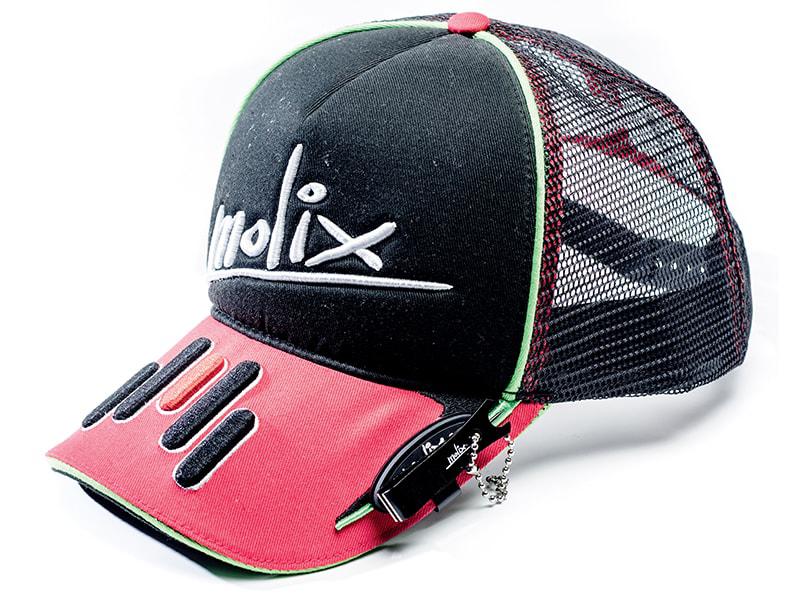 Τέλος την παραλαβή ολοκληρώνουν ο πολύ πρακτικός κόφτης που συγκρατείται με την βοήθεια μαγνήτη για εύκολη τοποθέτηση σε οποιαδήποτε περιοχή επιθυμεί ο χρήστης αλλά και στο... καπέλο τύπου “jockey” (!) της Molix. Το τελευταίο είναι κατάλληλο για προστασία από τον ήλιο αλλά και... στιλάτα ψαρέματα!
