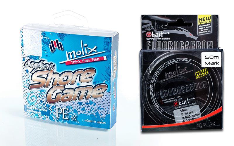 Εκτός από τα τεχνητά, η γκάμα περιλαμβάνει και τις προτάσεις της Molix στα νήματα και στις πετονιές fluorocarbon με το Super Shore Game και X-Bait Fluorocarbon αντίστοιχα.