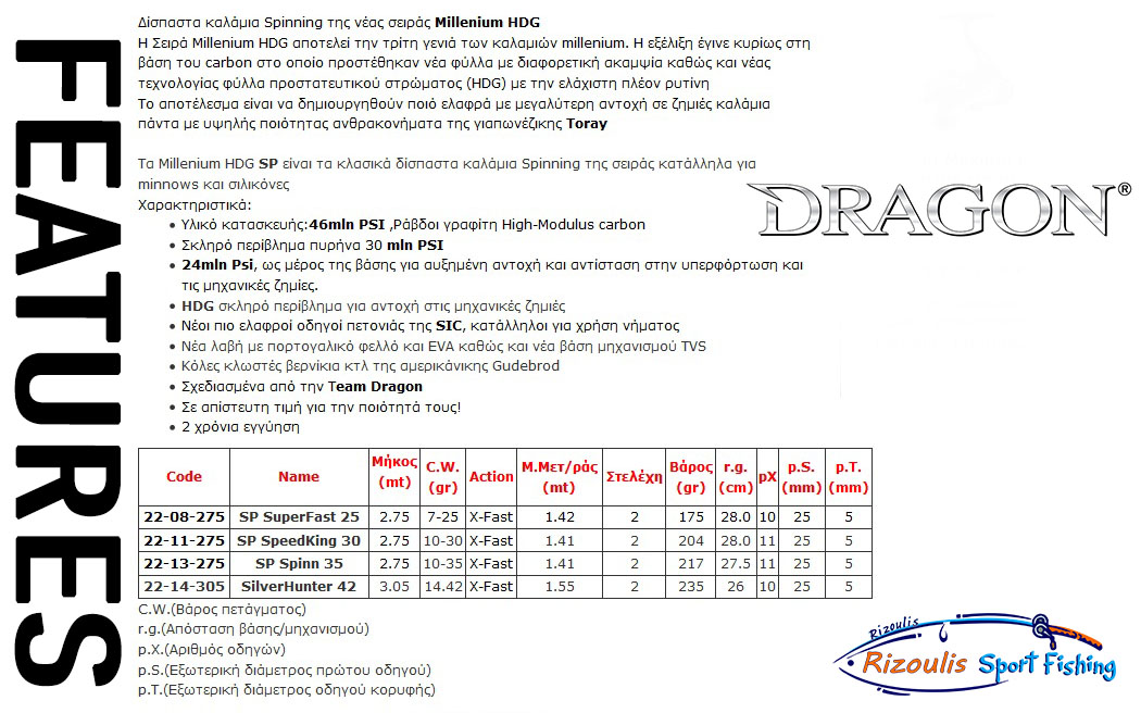 Η Millenium είναι μια σειρά καλαμιών «value for money» που την προτείνω ανεπιφύλακτα σε όλους, ειδικότερα σε όσους σκέφτονται να εισέλθουν στον μαγικό κόσμο του Spinning. Τελικά υψηλή ποιότητα σε χαμηλό κόστος….. ΝΑΙ γίνεται… από την εταιρεία DRAGON.