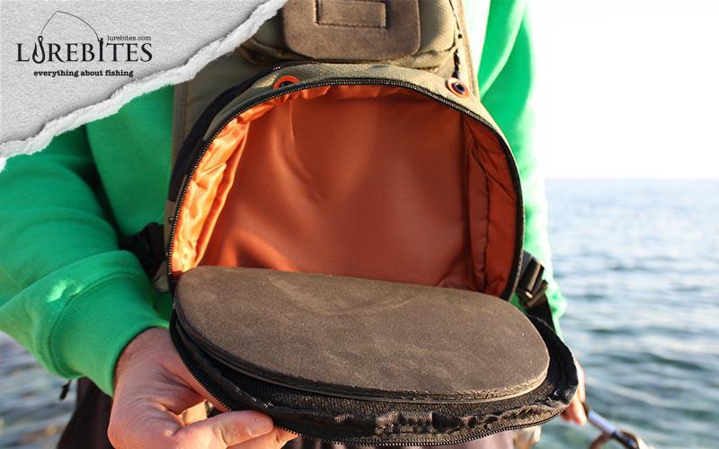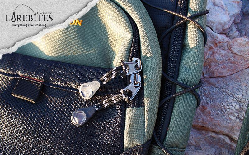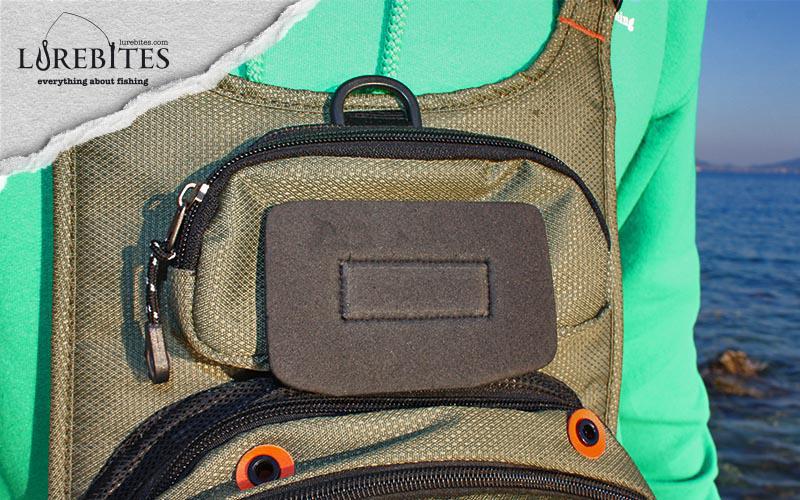 Δεν μπορεί να περάσει απαρατήρητη η εξωτερική πλευρά της τσέπης, που της έχει τοποθετηθεί σκρατς με κολλημένο πάνω της ένα κομμάτι μαλακό αφρώδες πλαστικό. Η χρησιμότητα αυτού, πιθανόν να είναι για την υποδοχή ενός φακού ή ακόμα και μιας ελαφριά actioncam αλλά σίγουρα μπορούμε να καρφώσουμε σιλικόνες με jighead για εύκολη αλλαγή κατά την διάρκεια του ψαρέματος.