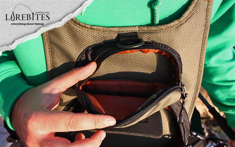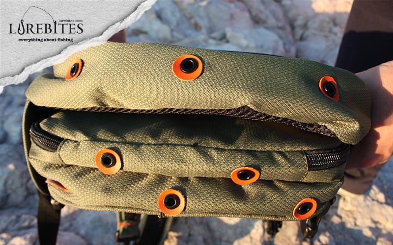 Επίσης παρατηρώντας όλες τις τσέπες, εξαιρώντας την μικρή στο μπροστινό μέρος, όλες οι άλλες διαθέτουν τρύπες αποστράγγισης, γεγονός που φανερώνει ότι το Chestpack έχει σχεδιαστεί και για χρήση σε συνθήκης ψαρέματος spinning με waders όπου η είσοδος νερού μέσα στις τσέπες είναι συνηθισμένο φαινόμενο.