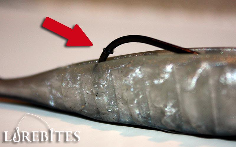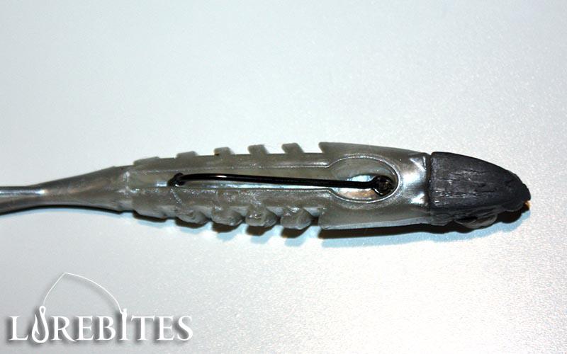 Το σώμα του Neo shad είναι κενό στο κάτω μέρος, με σκοπό να φιλοξενήσει το ίσιο αγκίστρι που προσφέρεται μαζί με το jighead. Στην πράξη το αγκίστρι δεν διατρυπά κατά μήκος τη σιλικόνη καθώς υπάρχει το κενό και απλά καρφώνουμε το αρπάδι στο πάνω μέρος του σώματος από το εσωτερικό της σιλικόνης.