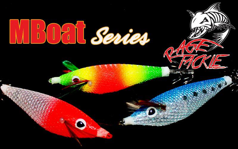 Για τους λάτρεις των καλαμαριερών τύπου γουρουνάκι, η Rage Tackle έχει την λύση με την σειρά MBoat series. Πρόκειται για καλαμαριέρες μεγέθους 2.5 με βάρος 10 γρμ., βυθιζόμενες με ρυθμό 5,5 sec ανά μέτρο.