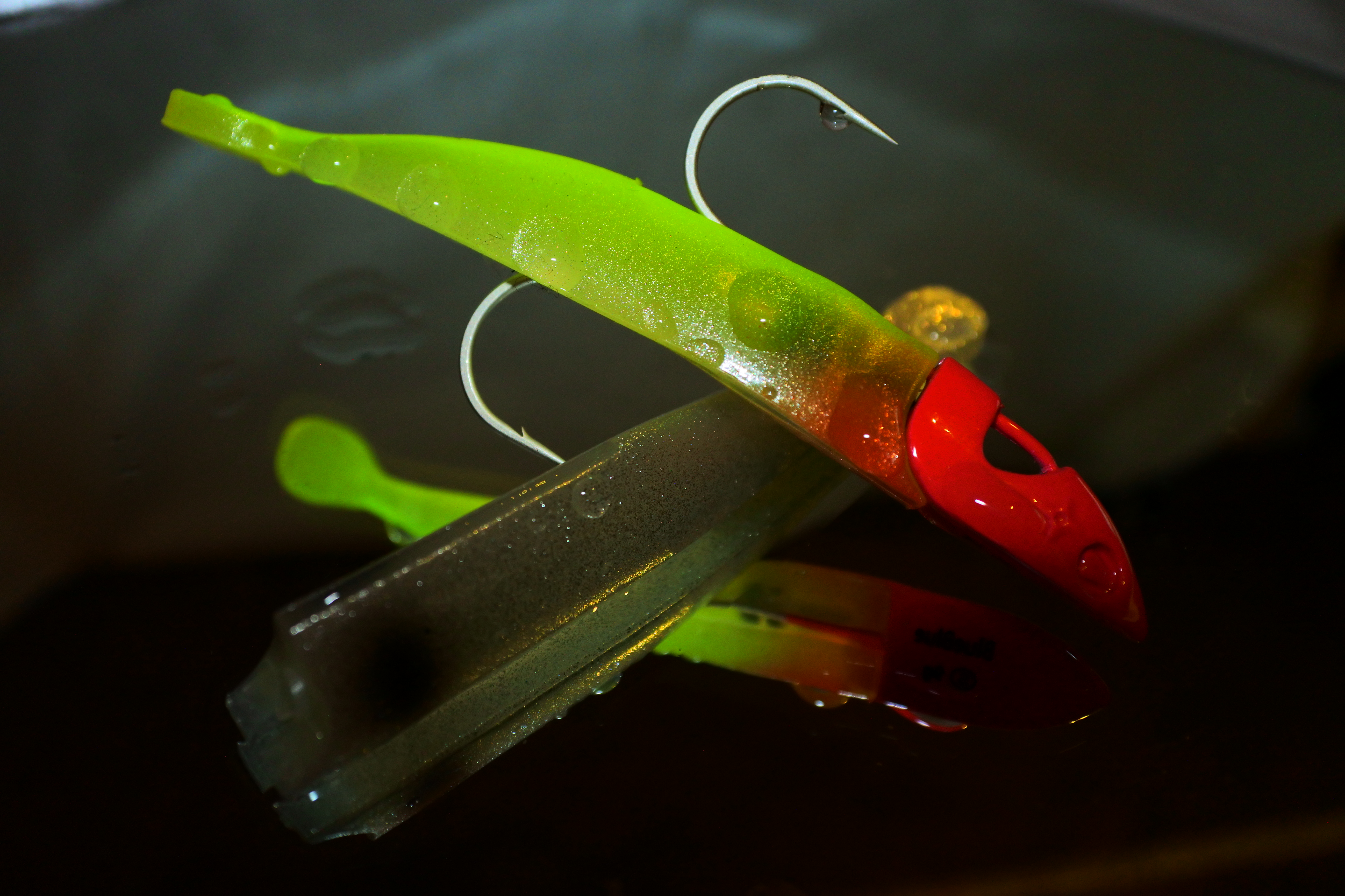 Όπως μπορούμε να δούμε το Jighead είναι εφοδιασμένο με δύο ισχυρά ποιοτικά αγκίστρια, ένα στο πάνω μέρος και ένα μακρύτερο που βρίσκεται στο κάτω μέρος. Στόχος της εταιρείας είναι το σίγουρο κάρφωμα. Η ανάγκη αυτή δημιουργήθηκε από το γεγονός ότι συνηθίζουν-λατρεύουν να ψαρεύουν τις σπάθες, που είναι ψάρια με δόντια και σκληρό στόμα, άρα έχουν δύσκολο κάρφωμα. Τέλος ενδιάμεσα από τα δύο αγκίστρια βρίσκεται τοποθετημένο ένα μεταλλικό στοιχείο σαν "καρφί" στο οποίο μπαίνει με εύκολο και γρήγορο τρόπο η σιλικόνη με μία κίνηση καθώς και η δυνατή συγκράτηση της σιλικόνης στο Jighead.