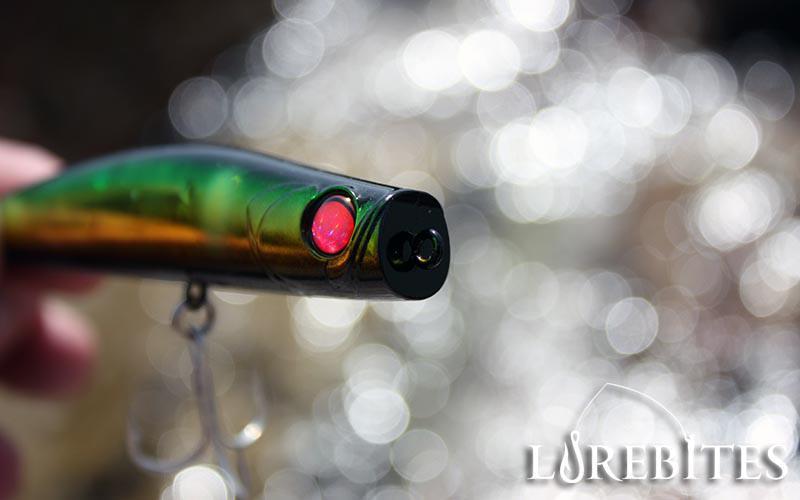 Στο κεφάλι υπάρχουν δυο κόκκινα 3D μάτια, κάτι το οποίο αποτελεί σήμα κατατεθέν των τεχνητών της εταιρίας. Επίσης, έχει όμορφα λεπτομερή χαραγμένα βράγχια που το κάνει ακόμη πιο αληθοφανές στα μάτια των αρπακτικών. Το κεφάλι του είναι επίπεδο και έτσι μπορούμε να αισθανθούμε στο καλάμι μας την αντίσταση του τεχνητού την ώρα που απωθεί το νερό, έχοντας τον καλύτερο του έλεγχο παράλληλα.