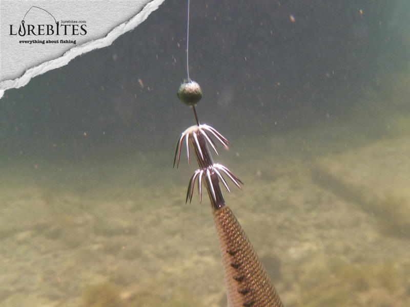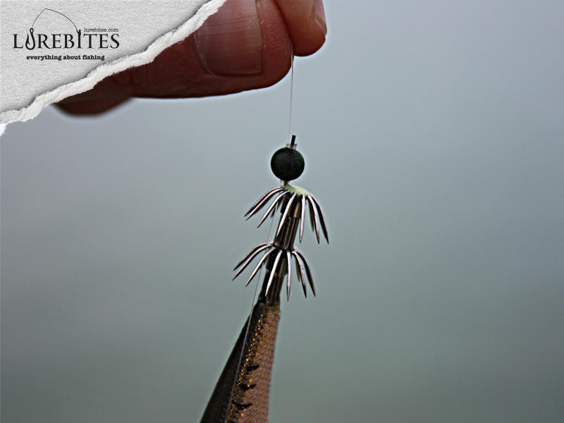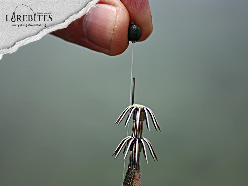 Βήμα 1ο : Αυτό που έχουμε να κάνουμε αρχικά, είναι να περάσουμε το παράμαλλο μας μέσα από την διαμπερή τρύπα της σφαίρας και στην συνέχεια να δέσουμε την παραμάνα. Όταν τελειώσουμε αυτήν την διαδικασία περνάμε στην παραμάνα τον κρίκο της καλαμαριέρας.