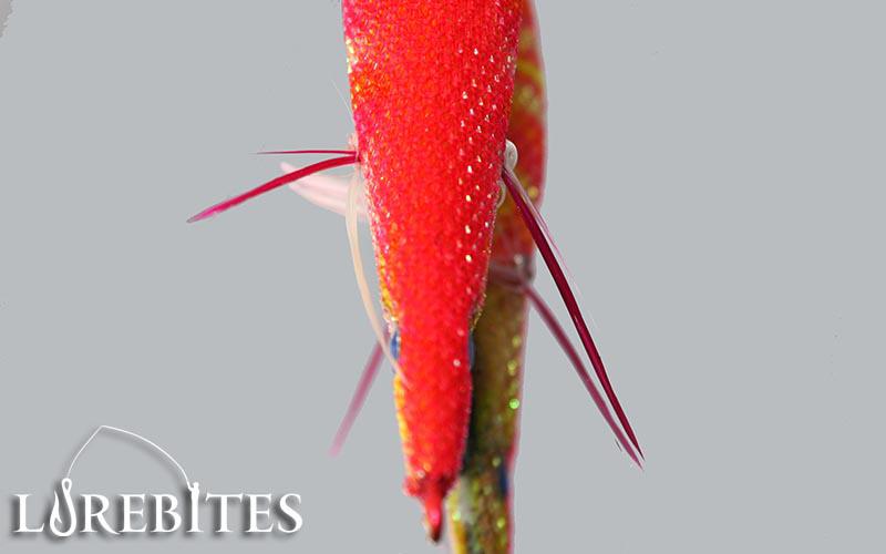 Επίσης, διαθέτει σώμα που φωσφορίζει και έξτρα λωρίδα φωσφόρου στο κάτω μέρος για να γίνεται περισσότερο αντιληπτή στα μάτια των καλαμαριών που ως γνωστόν “βλέπουν” στο υπεριώδες φάσμα. Κατά τα άλλα τα γκίνια είναι διπλής σειράς, το πορώδες ύφασμα αρκετά ποιοτικό, μάτια απλά υπερμεγέθη και στριφτάρι στην μύτη της.