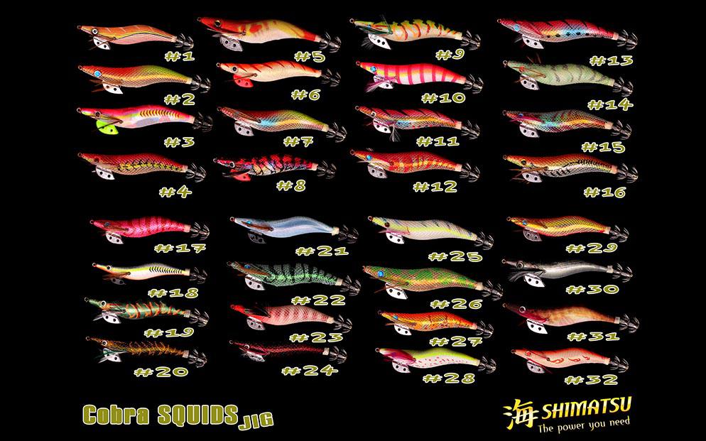 Όμως το πιο θετικό από όλα είναι ότι σχεδόν όλοι οι τύποι προσφέρονται σε μία απίστευτα μεγάλη γκάμα διαφορετικών χρωματισμών, πολλοί από τους οποίους συναντώνται μόνο σε ακριβές καλαμαριέρες. Αυτό δεν το βρίσκουμε εύκολα σε καμία καλαμαριέρα, πόσο μάλλον σε αυτές της οικονομικής κατηγορίας. Εμείς θα σας παρουσιάσουμε αναλυτικά οκτώ διαφορετικούς τύπους κατάλληλους για το Eging από την ακτή και το σκάφος που στοχεύουν σε καλαμάρια αλλά και σουπιές, ξεκινώντας από την οικογένεια Cobra.