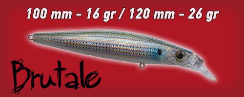 Ένα minnow που κατεβαίνει πολύ πιο κάτω από την επιφάνεια, αν και πάντα κάνει την διαφορά, στην χώρα μας δεν είναι τόσο διαδεδομένο.... Το Brutale ήρθε για να αλλάξει αυτό το στερεότυπο με μάλιστα δύο διαφορετικές εκδόσεις : μια με μέγεθος 100 mm & 16 gr και μία με 120 mm & 26 gr.