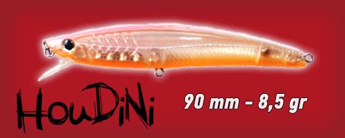 Από την γκάμα της εταιρείας δεν θα μπορούσε να λείπει ένα αξιόπιστο μικρό minnow που θα μας βγάλει ασπροπρόσωπους όταν τα αρπαχτικά τρέφονται με πολύ μικρά ψάρια. Και το όνομα αυτού... Houdini! Το μήκος του είναι 90 mm αλλά το βάρος του είναι 8,5 gr ώστε να μπορούμε να το στέλνουμε εύκολα σε μακρινές αποστάσεις.