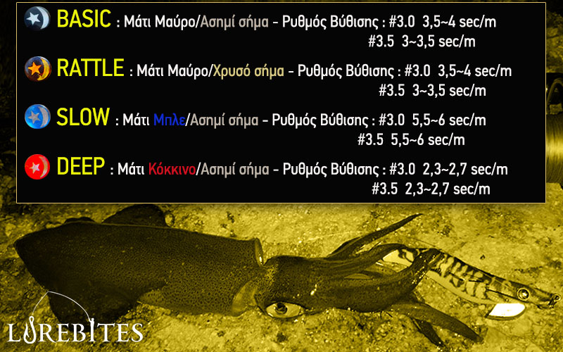 - ενώ όταν έχουμε άσχημες καιρικές συνθήκες και τελείως καχύποπτα καλαμάρια, η σταθερή βύθιση που διαθέτει θα αποφέρει το πολυπόθητο strike και φυσικά... την ικανοποίηση στο πρόσωπό μας!