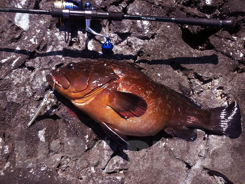 Ο βασιλιάς του βυθού! Σε αντίθεση με την στείρα άμα καταφέρει και βραχώσει, οι πιθανότητες να γίνει η σύλληψη δεν είναι υπέρ μας. Άμα δε πιαστεί κοντά στο θαλάμι του το οποίο γνωρίζει τέλεια μιας και είναι το σπίτι του, τα πράγματα γίνονται πάρα πολύ δύσκολα. Το βάρος του μπορεί να φθάσει και τα 60 κιλά αλλά τα ψάρια που συνήθως βγαίνουν με shore jigging είναι πολύ πιο μικρότερα.