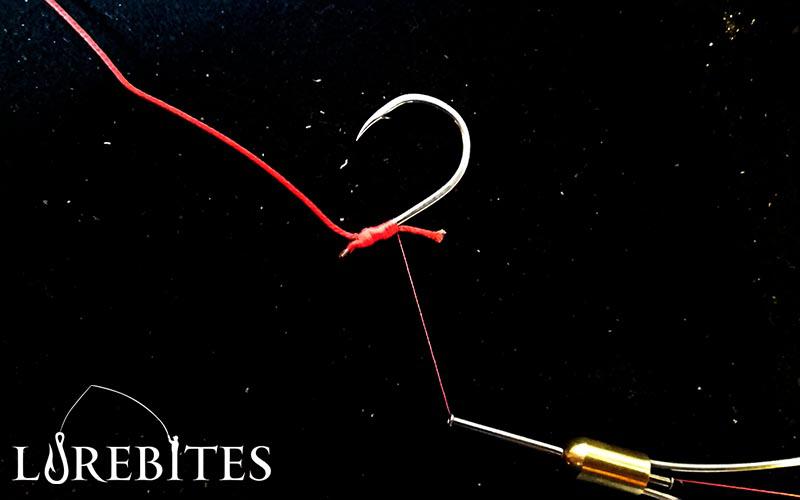 Ξεκινώντας να δένουμε το assist μας σε αγκίστρι με παλέτα, πρώτα από όλα πρέπει να υπολογίσουμε το μήκος του. Το σωστό μήκος ενός ολοκληρωμένου Assist Hook δεν θα πρέπει να ξεπερνάει το 1/3 του πλάνου μας. Θα πάρουμε το Αssist line θα αφήσουμε περιθώριο 1-2 πόντους ανάλογα πάντα το μέγεθος του αγκιστριού μας και θα το περάσουμε διαμπερές να περάσει τον κλέφτη. Θα τραβήξουμε το Αssist line να τερματίσει πίσω στην παλέτα και θα φέρουμε παράλληλα με το κορμό του αγκιστριού μας τους 1-2 πόντους που αφήσαμε περίσσεμα.
