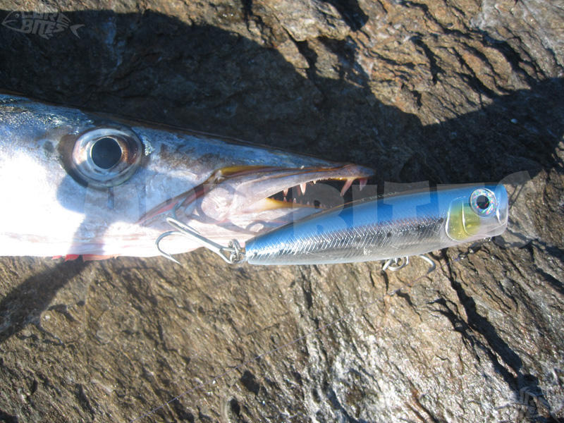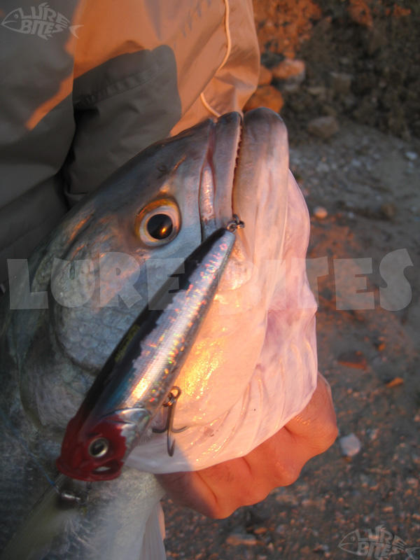 - Θυμάμαι χαρακτηριστικά μια φορά με δυνατό καιρό και μεγάλα κύματα ένα πολύ μεγάλο λαβράκι να κάνει στην κυριολεξία σέρφινγκ στον αφρό ενός κύματος, να ανοίγει το στόμα του δείχνοντας ακόμα και τα βράγχια του και να καταβροχθίζει το popper των σαράντα γραμμαρίων και δεκατεσσάρων εκατοστών, εκτινάσσοντας την ουρά του στον αέρα.