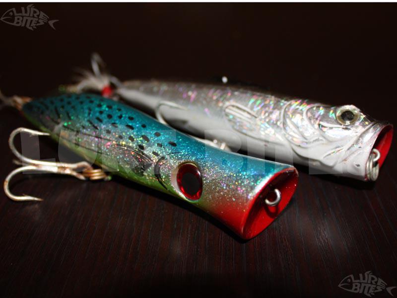 Ένα άλλο θέμα είναι το μέγεθος. Υπάρχει πολύ μεγάλη δυσπιστία όσον αφορά το κατά πόσο ένα popper των δεκαπέντε εκατοστών μπορεί να δελεάσει και να καρφώσει ένα λαβράκι ή άλλο ψάρι. Κάποιοι τα βλέπουν και εύλογα αναρωτιούνται: «Τι θα πιάσω μ’ αυτό; Φάλαινες;». Με λόγια δεν γίνεται να αποδείξει κανείς τίποτα. Εύχομαι να καλμάρουν λίγο οι ενδοιασμοί αυτοί με τις φωτογραφίες που παραθέτω. Με απλά λόγια όμως θα εκφράσω την άποψή μου, η οποία είναι ότι όλα τα μεγέθη είναι ικανά να πιάσουν ψάρια. Όσο μεγαλώνει το μέγεθος, αυξάνουν και οι πιθανότητες να πιαστεί μόνο μεγάλο ψάρι - και το αντίθετο.