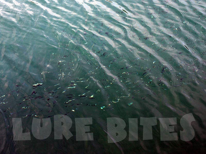 Το δεύτερο σημάδι που αναζητούμε στην παραλία είναι τα μικρά κοπάδια ψαριών όπως αθερίνες, σαρδέλες, ζαργάνες, κεφαλόπουλα κ.α. Αν καταφέρουμε και τα εντοπίσουμε τα ακολουθούμε σαν… γλάροι μέχρι κάποιο αρπαχτικό να τα αναστατώσει. Ειδικά αν δούμε κάποια από αυτά να πηδάνε έξω από το νερό τότε σίγουρα κάποιο μεγάλο ψάρι υπάρχει εκεί κοντά. Η παρατήρηση για κοπάδια μικρών ψαριών είναι εύκολή όταν η θάλασσα είναι ήρεμη αλλά πολύ δύσκολη σε ταραγμένη θάλασσα. Στην δεύτερη περίπτωση, μόνο αν κάποιο μικρό ψάρι πηδήξει έξω από το νερό μπορούμε να καταλάβουμε που βρίσκονται τα κοπάδια αλλά με τον καιρό θα εκπαιδευτεί το μάτι μας και τα πράγματα θα είναι εξίσου εύκολα. Η σωστή παρατήρηση έρχεται με την εμπειρία για αυτό πολλές φορές τυχαίνει, κάποιοι που κάνουν περισσότερο καιρό spinning από εμάς, να βλέπουν ψάρια εκεί που εμείς όσο και να κοιτάμε… δεν βλέπουμε τίποτα! Για να εξοικειωθούμε πιο γρήγορα, ένα ζευγάρι polarize γυαλιά ηλίου μπορούν να μας βοηθήσουν να δούμε πιο καθαρά μέσα στο νερό.