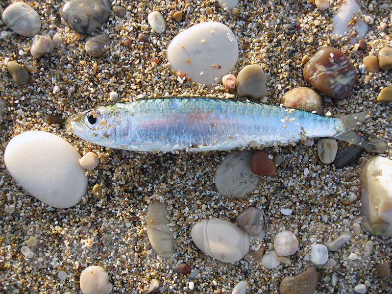Το τρίτο σημάδι που αναζητούμε στην παραλία είναι η παρουσία νεκρών μικρών ψαριών στην ακροθαλασσιά. Όταν ένα αρπαχτικό κυνηγάει μέχρι την άκρη του κύματος, αναγκάζει τα μικρά ψάρια να πεταχτούν έξω από το νερό. Αν τα ψάρια αυτά σπαρταράνε ακόμα ή είναι νεκρά αλλά έχουν διατηρήσει τα χρώματα τους, αυτό σημαίνει ότι το κυνήγι ήταν πρόσφατο, άρα το αρπαχτικό βρίσκεται κάπου εκεί κοντά. Στην αντίθετη περίπτωση φροντίζουμε να ξεκινήσουμε το ψάρεμα μας λίγο πιο νωρίς την επόμενη φορά και καταγράφουμε αυτήν την πληροφορία για μελλοντικά μας ψαρέματα.