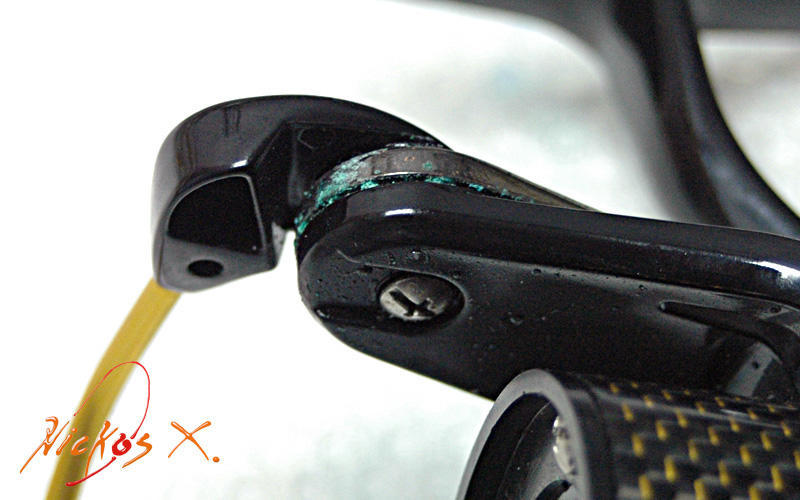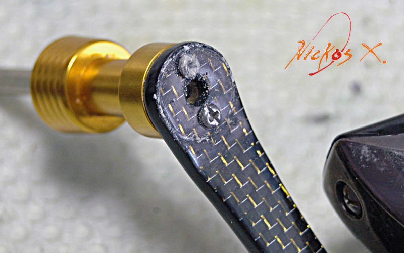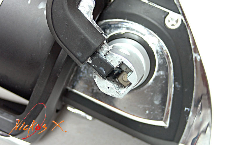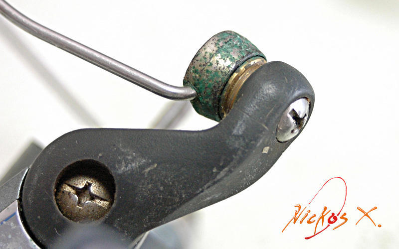 Εδώ φαίνεται η λάθος κλίση που έχει ο άξονας σε σχέση με το καλάμι, που οφείλεται σε στραβό πόδι του μηχανισμού από κακή χρήση
