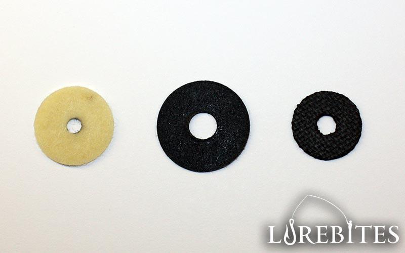 Από αριστερά προς τα δεξιά : ροδέλα από πανί, από μίξη πανί με carbon και από carbon