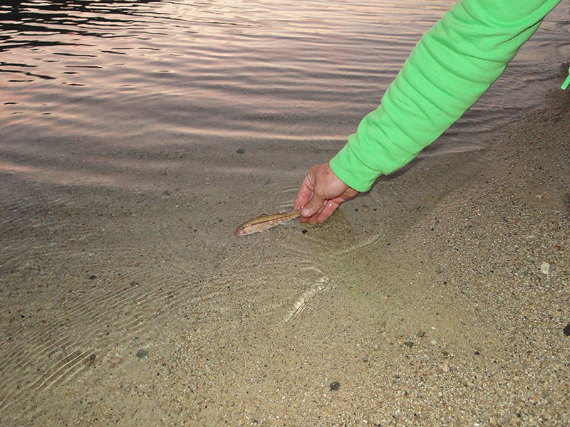 Όσο περνούσε η ώρα και δοκιμάζοντας τεχνικές ήρθαν και τα πρώτα αλιεύματα, μικρά καλαμάρια, μπαρπούνια και χταποδάκια βρέθηκαν εκεί για να μας χαιρετίσουν και γρήγορα επέστρεψαν στο σπίτι τους μιας και από την αρχή της εκδήλωσης το "c & r" ήταν και το ζητούμενο!
