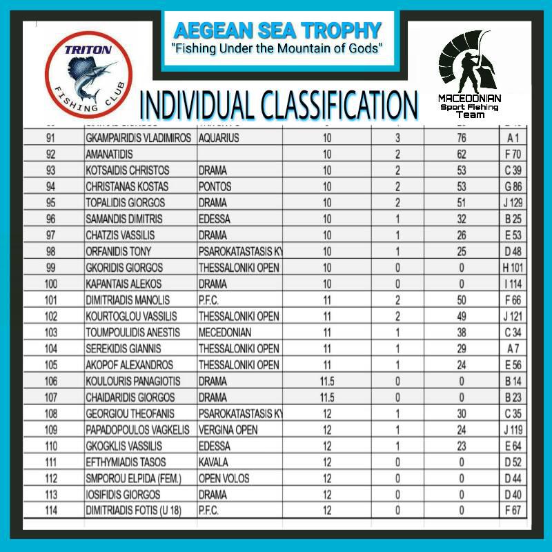 Υπό το άγρυπνο βλέμμα των δώδεκα θεών του Ολύμπου ολοκληρώθηκε με μεγάλη επιτυχία το πρώτο διεθνές τουρνουά Aegean Sea Trophy που έλαβε χώρα στις 22 Οκτωβρίου, στην όμορφη Κατερίνη και με διοργανωτές τους TRITON F.C. και Macedonian Sport Fishing Team υπό την αιγίδα της Ε.Ο.Υ.Δ.Α.!
