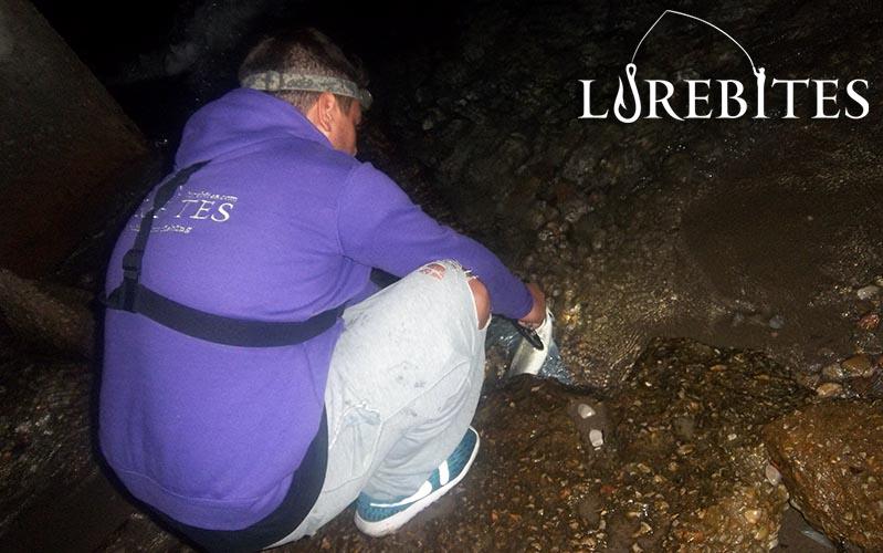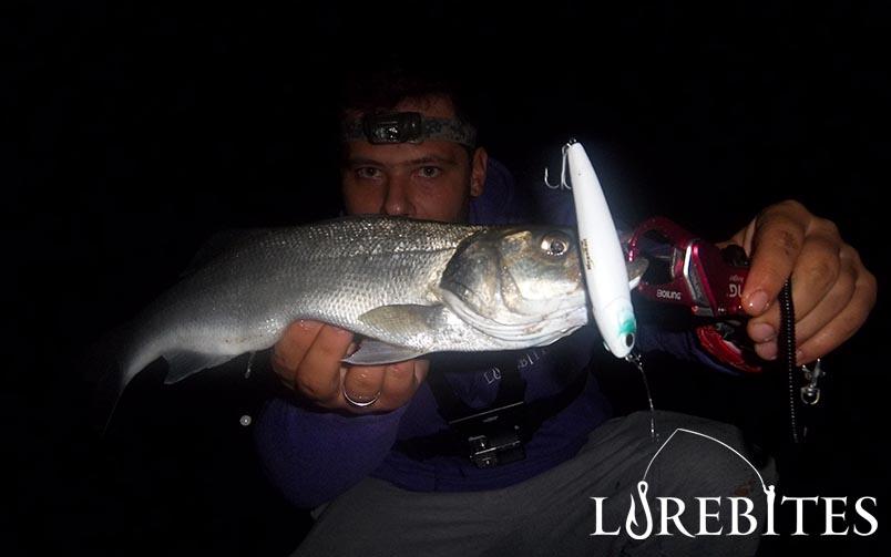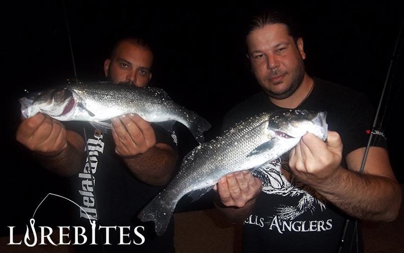 Μόλις νύχτωσε το ψιλό που βρισκόταν στην ακρογιαλιά άρχισε να χοροπηδάει τρομαγμένο. Το κυνήγαγαν τα μικρά λαβράκια που έκαναν βόλτα μπροστά μας. Υπήρχε έντονη κινητικότητα, δίνοντας μας την πεποίθηση για ένα πιθανό καλό αποτέλεσμα. Αποφασίσαμε λοιπόν με τον φίλο Γιάννη να κάνουμε από πέντε ρίψεις ο καθένας με ενδιάμεση παύση πέντε λεπτών μιας και ο χώρος ήταν περιορισμένος και επειδή θεωρήσαμε πως μια βροχή ρίψεων από τεχνητά, θα τρόμαζε αντί να έλκυε τα λαβράκια που καρτέρευαν για την τροφή τους κόντρα στο ρεύμα σχεδόν ακίνητα. Έτσι καταφέραμε να βγάλουμε αρκετά μικρά λαβράκια τα οποία απελευθερώθηκαν όλα, με πολλά διαφορετικά τεχνητά.