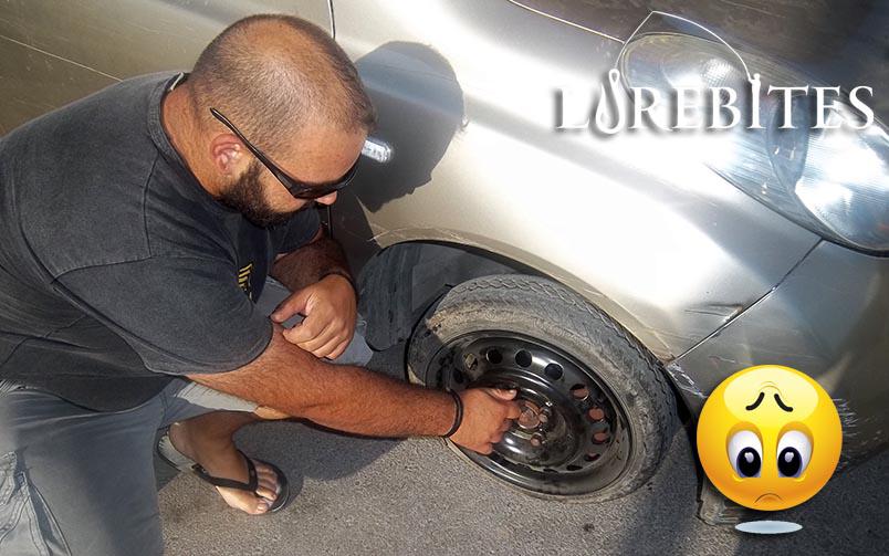 Δυστυχώς ο Μανώλης κι ο Αντώνης δεν μπορούσαν να έρθουν. Ένα ατυχές γεγονός ήταν ότι μόλις μπήκαμε στο αμάξι παρατηρήσαμε ότι είχε σκάσει το μπροστινό λάστιχο του αμαξιού. Έτσι έπρεπε να αναλάβουμε καθήκοντα "λαστιχά". Ε ρε γκαντεμιά που μας δέρνει, σκέφτηκα.... Από εκεί που ονειρευόμασταν εκρήξεις από λαβράκια στα surface μας... προσγειωθήκαμε στη "μαυρίλα" που γέμισαν τα χέρια μας από την ζάντα. Τέλος καλό όλα καλά. Άλλωστε όλα μέσα στο πρόγραμμα είναι.