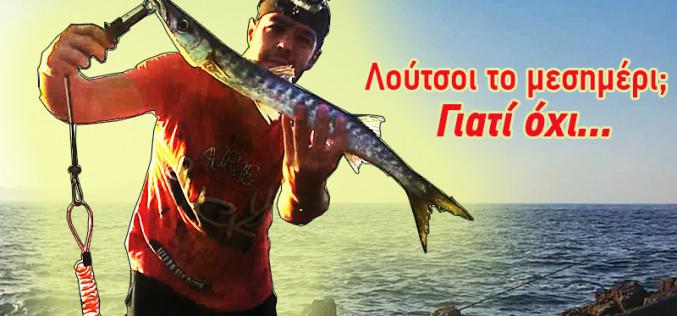 Πολλοί είναι αυτοί που έχουν συνδέσει το ψάρεμα του λούτσου με το βράδυ ή το χάραμα και όχι άδικα, μιας και αυτό το ψάρι στα μέρη όπου συνήθως το συναντάμε, δραστηριοποιείται περισσότερο εκείνες τις ώρες του εικοσιτετράωρου προκειμένου να αναζητήσει την τροφή του. Παρόλα αυτά έχω καταφέρει να πάρω αρκετά ψάρια κυρίως το μεσημέρι, όταν ο ήλιος βρίσκεται στο απόγειό του, με πολλά άτομα να απορούν και να με ρωτάνε πως καταφέρνω κάτι τέτοιο.